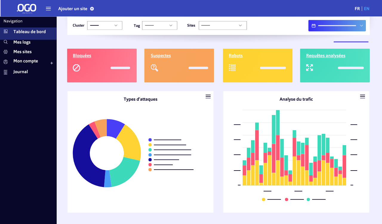 OGO offre une visualisation complète de tout évènement de sécurité ou de performance. OGO permet ainsi des analyses complètes en temps réel avec journaux d'investigation de 90 jours pour les enquêtes sur les incidents, une revue des performances et des temps de reponses de vos applications, et une analyse sur la consommation de chaque endpoint